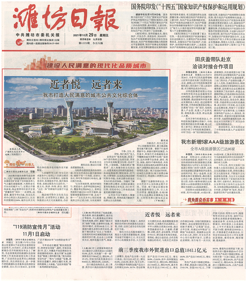 10月29日,濰坊日報對我公司服務(wù)管理的濰坊市文化藝術(shù)中心項(xiàng)目進(jìn)行了頭版報道,現(xiàn)就我公司服務(wù)管理的大型公共建筑項(xiàng)目做如下介紹: 近年來,伴隨經(jīng)濟(jì)的快速發(fā)展,居民文化水平、收入水平不斷增加,消費(fèi)需求不斷升溫,進(jìn)而帶動文化、娛樂、交通等公眾場館物業(yè)服務(wù)的需求逐年增加,