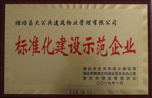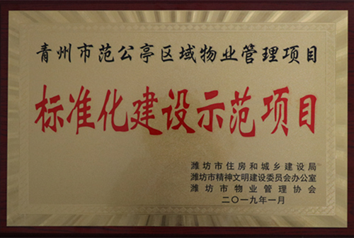 2019年1月青州市范公亭區域物業管理項目被評為“標準化建設示范項目”。