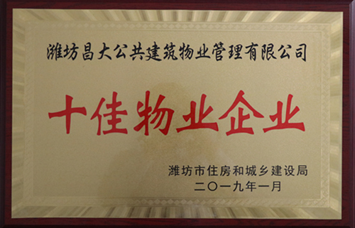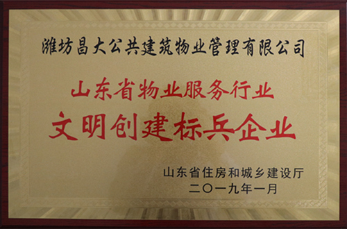 2019年1月被評為“山東省物業服務行業文明創建標兵企業”