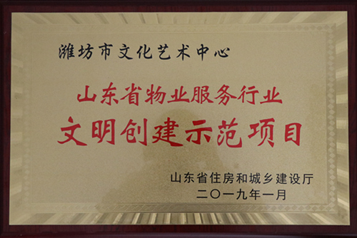 2019年1月濰坊市文化藝術中心物業管理項目被評為“山東省物業服務行業文明創建示范項目”