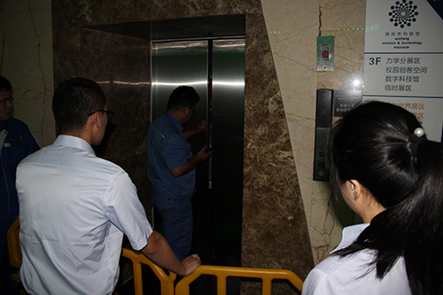 為了提升工作人員電梯運行、使用過程中各類意外和困人事件的處置能力,規范電梯值班員及電梯維保人員的救援措施,同時配合6月份安全生產月的活動,由濰坊昌大公共建筑物業管理有限公司藝術中心項目組織業主及工作人員于二零一七年六月三十日9:00在濰坊市科技館舉行電梯困人應急演練,解救被困人員后由專業電梯維保人員講解直梯和扶梯注意事項及救援措施。