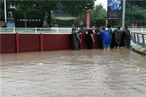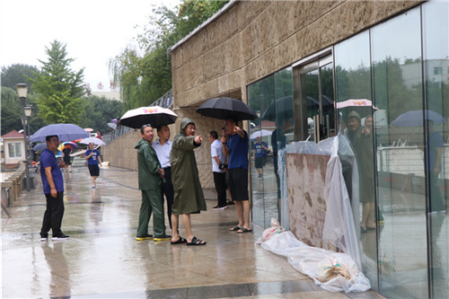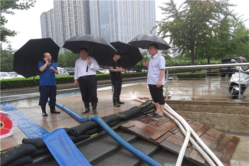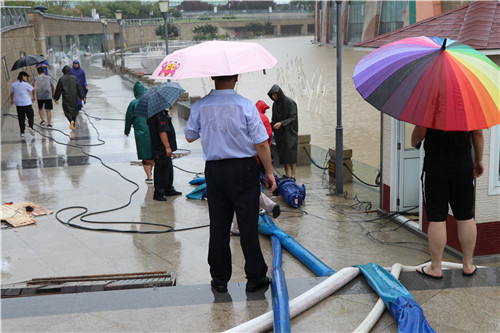 8月10日-11日汛期,濰坊市委常委、副市長劉建國,濰坊市黨委委員副市長田民利一行來到藝術中心景觀河排水現場摸排汛情,指導開展搶險防汛工作,調動增加一臺柴油抽水泵,并指出,有序開展防汛工作,注意人員安全,用電安全。