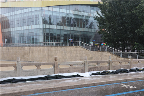 市文化藝術中心管理處、昌大集團分管副總、公管公司領導班子全程參與,并連夜多次召開調度會,同時協調昌大其他分公司勞務人員42人,投入運輸及工程車輛5輛,小型挖掘機1臺,水泵8臺,發電機2臺(含濰坊市市政局支援1臺)、汽油泵2臺,注膠板85塊、裝填及運輸沙袋約2500袋。