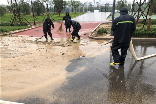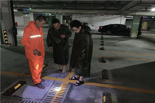 寒亭片區:全力迎戰。寒亭片區在地下車庫出入口放置防汛沙袋、拆卸園區進出口道閘,對園區內排水系統、配電室、低洼地帶、危險地段及辦公樓層等進行全面排查,消除隱患。臺風來臨時,全員無條件積極防汛。8月9日-11日,不間斷巡查地下車庫、電梯機房、各類設施設備用房、道路路面汛情。
