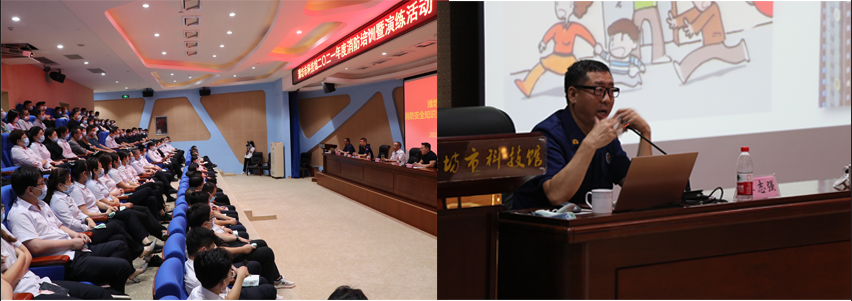 本次活動(dòng)共分室內(nèi)授課和室外演練兩個(gè)部分。上午9點(diǎn),濰坊市文化藝術(shù)中心場(chǎng)館科科長(zhǎng)高志磊、市科技館副館長(zhǎng)李凌云、少年宮、規(guī)劃館、圖書館、文化宮、保利大劇院、昌大公管、濰坊奉彰商管商鋪等135人參加了消防培訓(xùn)并在演練現(xiàn)場(chǎng)觀摩。